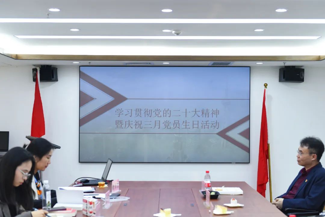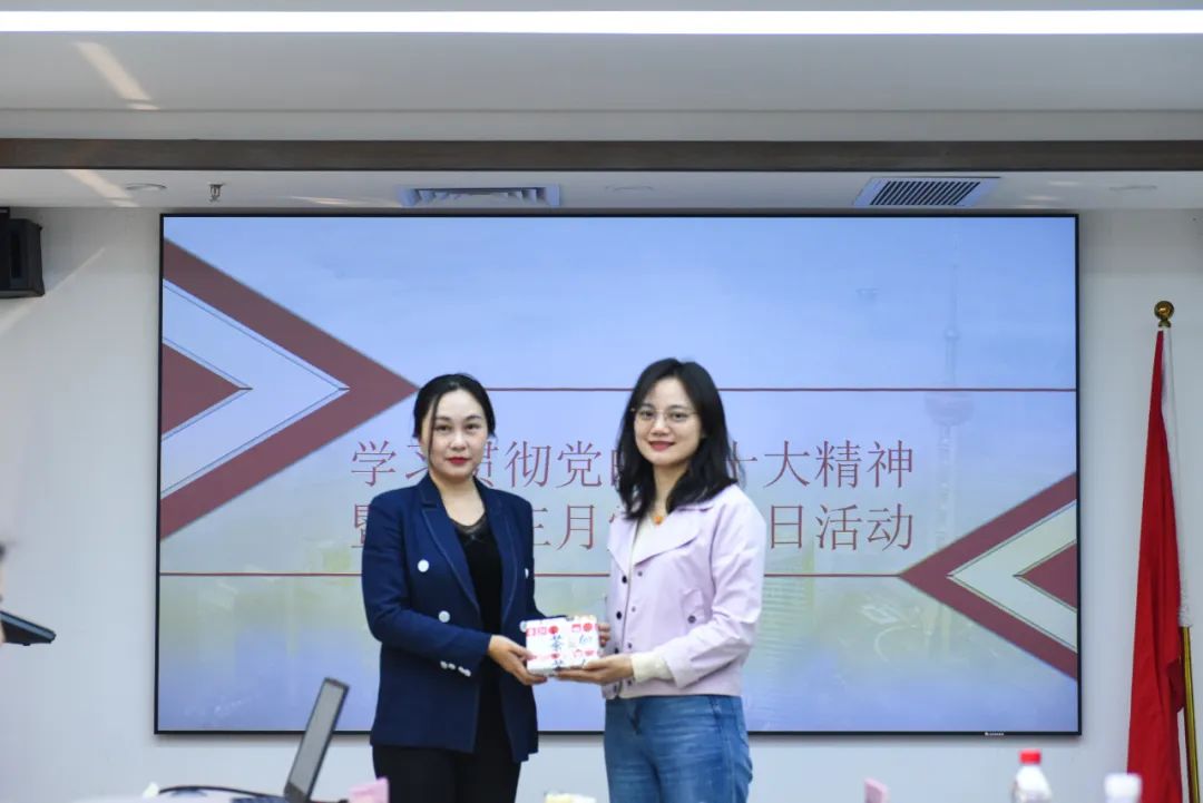 出席本月生日会的党员有黄辉辉、罗嘉敏、姚明艳三名同志。三名党员发表了生日感言,接受大家的祝福,并由总支委员陈家养、第二党支部书记江珊、第五党支部书记陈艳珊分别为他们送上党总支准备的生日礼物。