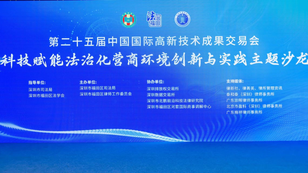 2023年11月15日至19日,第二十五届中国国际高新技术成果交易会在深圳盛大举行,福田区司法局参展为高交会提供法律服务保障,展位在福田会展中心1号馆。广东国晖律师事务所值班律师王婧参加福田区司法局展位值班并参加科技赋能法治化营商环境创新与实践主题沙龙。
