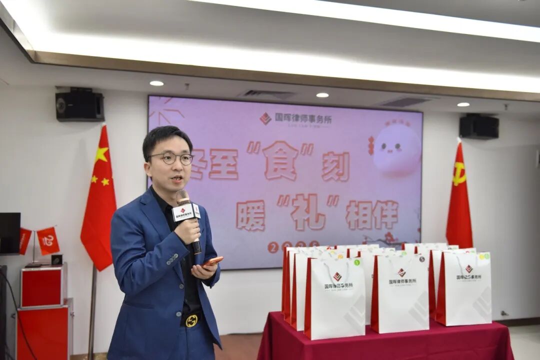 本次活动特别邀请了我所合伙人、党总支副书记、管理委员会副主任魏李刚律师作为嘉宾致辞,他向大家表达了真挚的冬至祝福,在未来的日子里,如同这冬至后的阳光,积蓄力量,日益精进,在专业领域持续探索,同时也要注重身心的调和与团队的温暖。