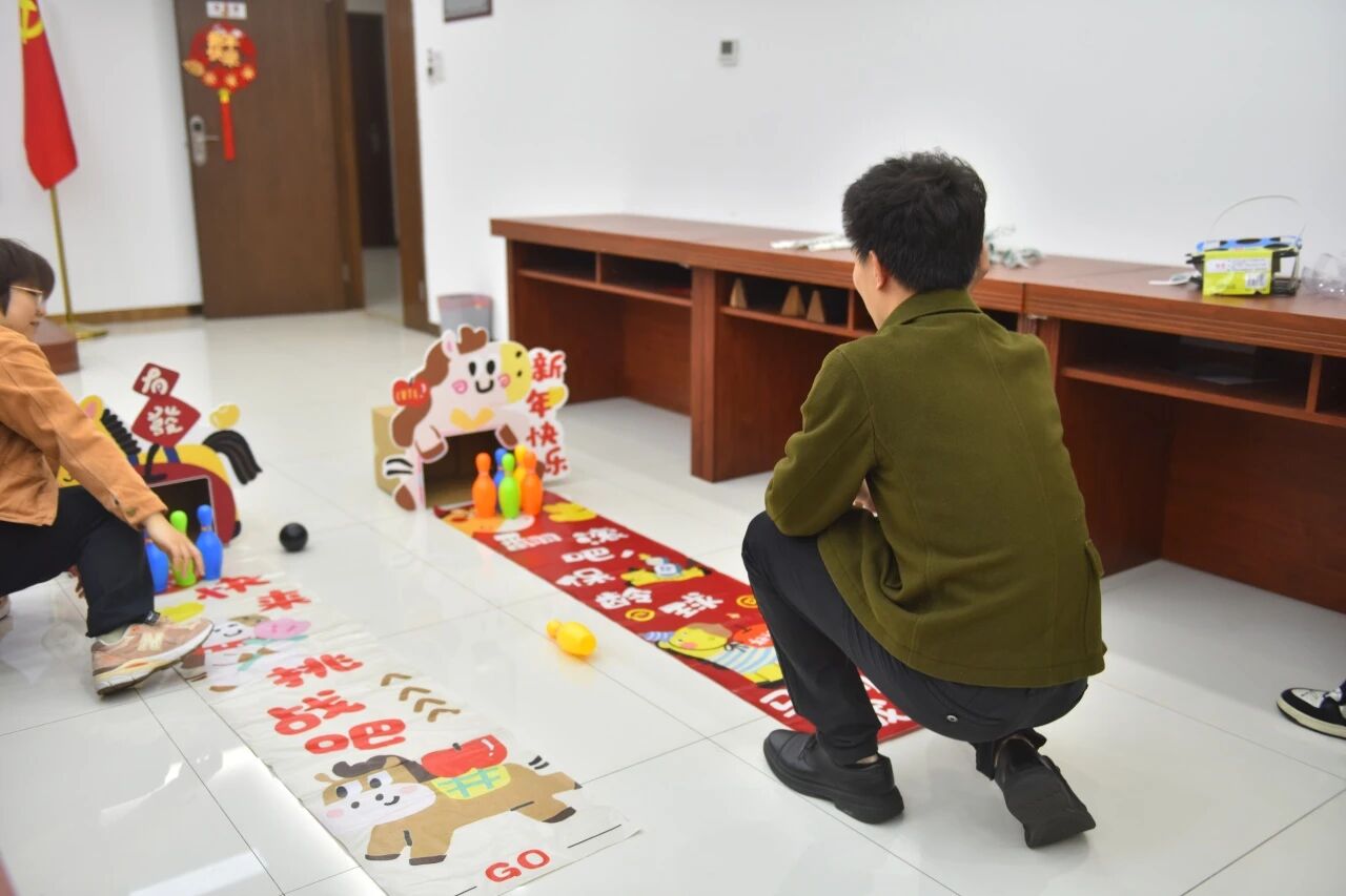 为增添节日乐趣,活动特别设置了趣味盎然的互动游戏环节。“你比划我猜”考验着搭档间的默契与表达能力。“趣味保龄球”展示的是技巧与力量,参与者凝神静气,瞄准目标,挥臂投球。