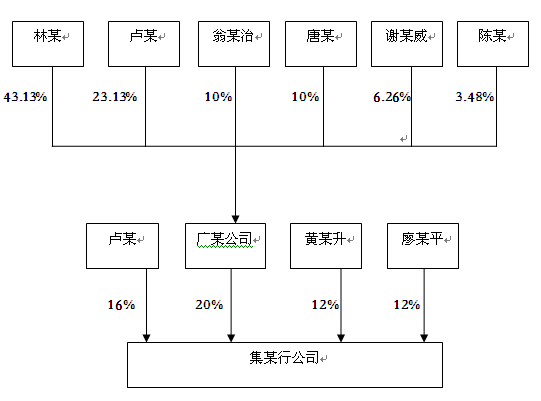 集某行公司于2015年6月7日取得《营业执照》,其注册资本为人民币1000万元,卢某认缴出资额为400万,出资比例为40%;廖某平认缴出资额为300万,出资比例为30%;黄某升认缴出资额为300万,出资比例为30%。经营范围为“受托资产管理、投资管理(不得从事信托、金融资产管理、证券资产管理及其他限制项目);投资顾问、财务顾问(以上均不含限制项目);股权投资;受托管理股权投资基金(不得从事证券投资活动,不得以公开方式募集资金开展投资活动;不得从事公开募集基金管理业务);依托互联网等技术手段,提供金融中介服务(根据国家规定需要审批的,获得审批后方可经营);国内贸易;投资兴办实业、依托互联网等技术手段,提供金融中介服务(根据国家规定需要审批的,获得审批后方可经营)”。执行董事和法定代表人黄某升,监事翁某红。