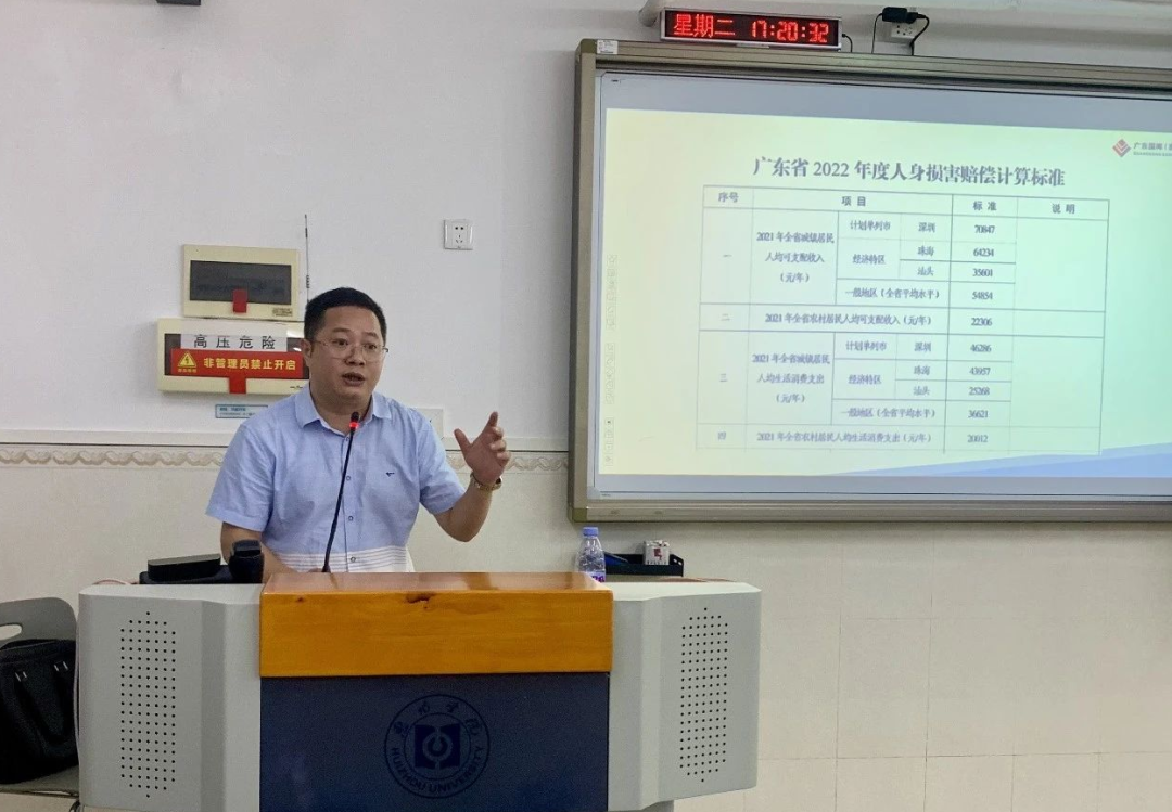 2023年10月31日,国晖(惠州)律师事务所的高级合伙人曾环钦律师受邀为惠州学院政法学院21届学生授课,讲授"侵权责任之道路交通事故实务课程"。
