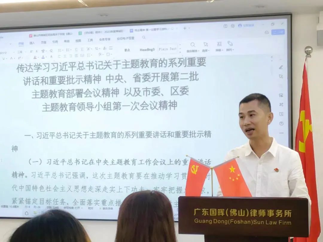 国晖佛山律师事务所党支部书记郑英达同志为大家开展了一场“不忘初心提升法律服务能力”的精品党课演讲。