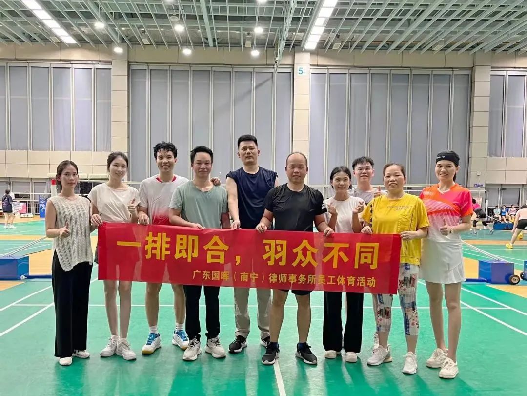 6月底,南宁分所组织了一次丰富多彩的体育活动,涵盖了羽毛球、排球和乒乓球三个项目,活动地点选在了设施完备、环境宜人的广西南宁体育中心。